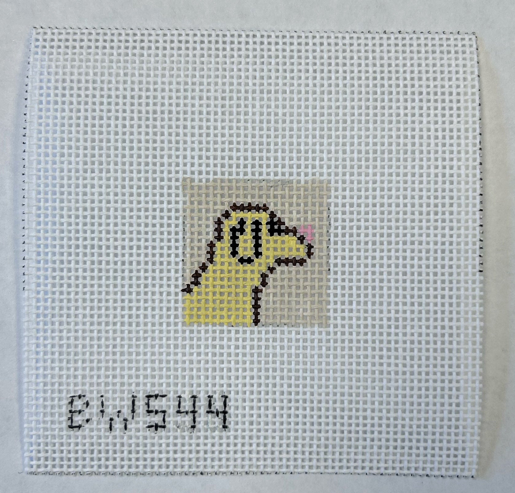 Bluewaters Needlepoint - Gold Dog Mini - Canvas for square leather self finishing key fobs or to make as a bag charm.