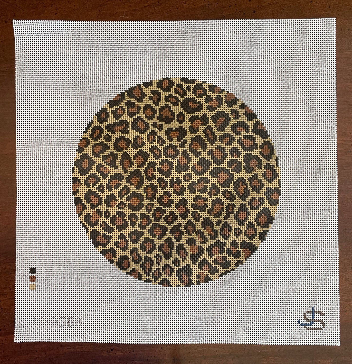 Jeni Sandberg round leopard canvas. Many possibilities for for this canvas to be finished as a pillow, a purse and even add a monogram!