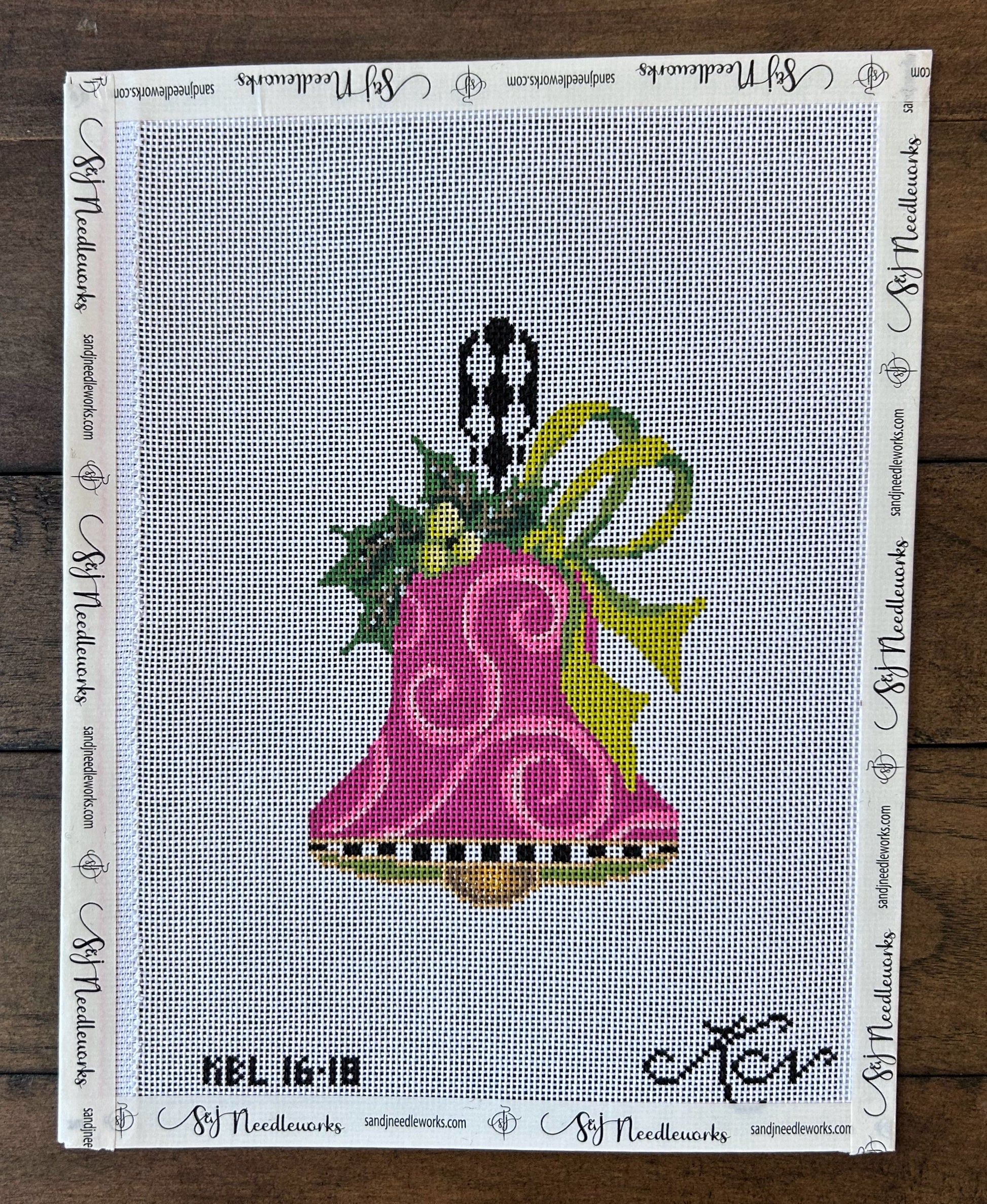 Kelly Clark Needlepoint- Fuchsia Swirls & Lime Bow Handbell