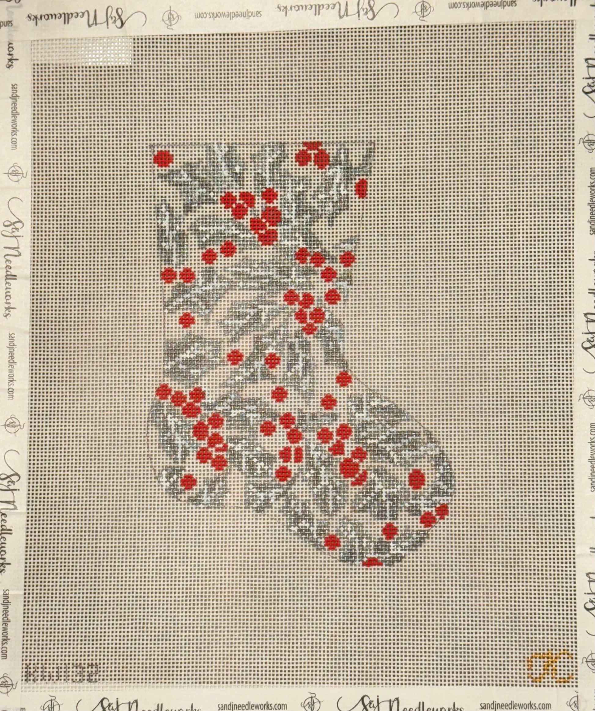 The Gingham Stitchery - Silver Holly Mini Stocking