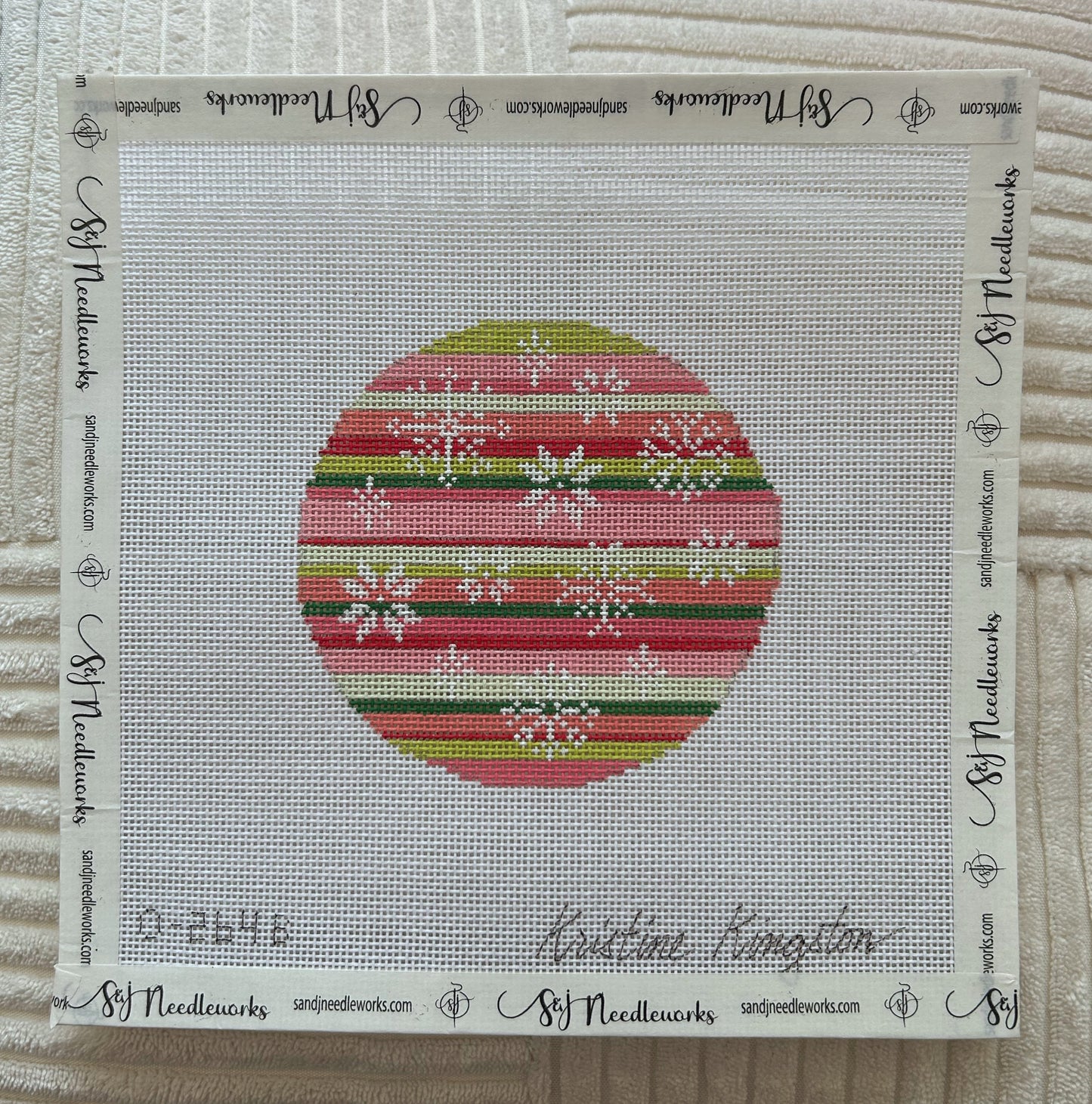 Kristine Kingston - Snowflakes Ornament - Pink and Green Stripes