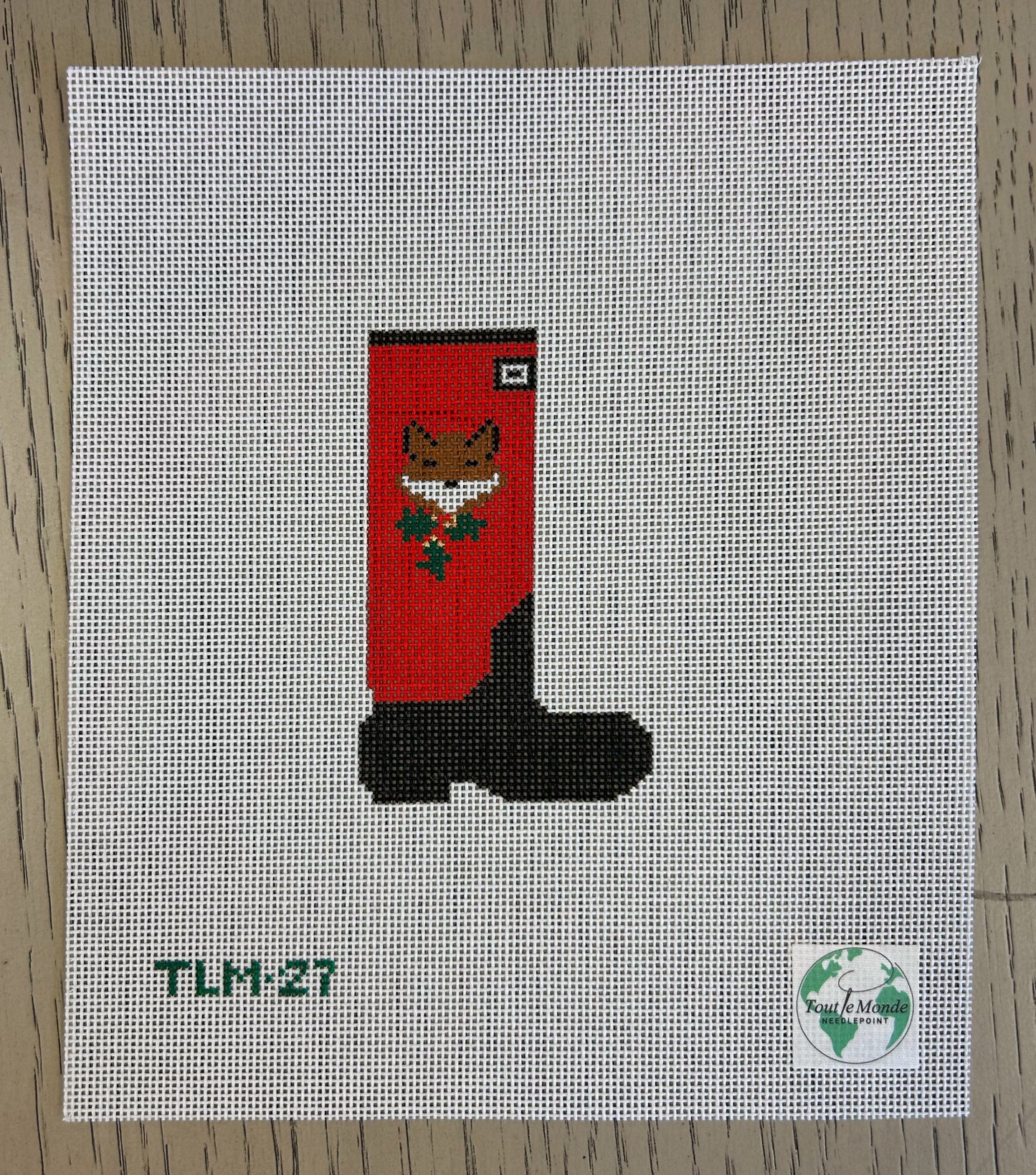 Tout Le Monde Needlepoint - Holiday Wreath Wellie